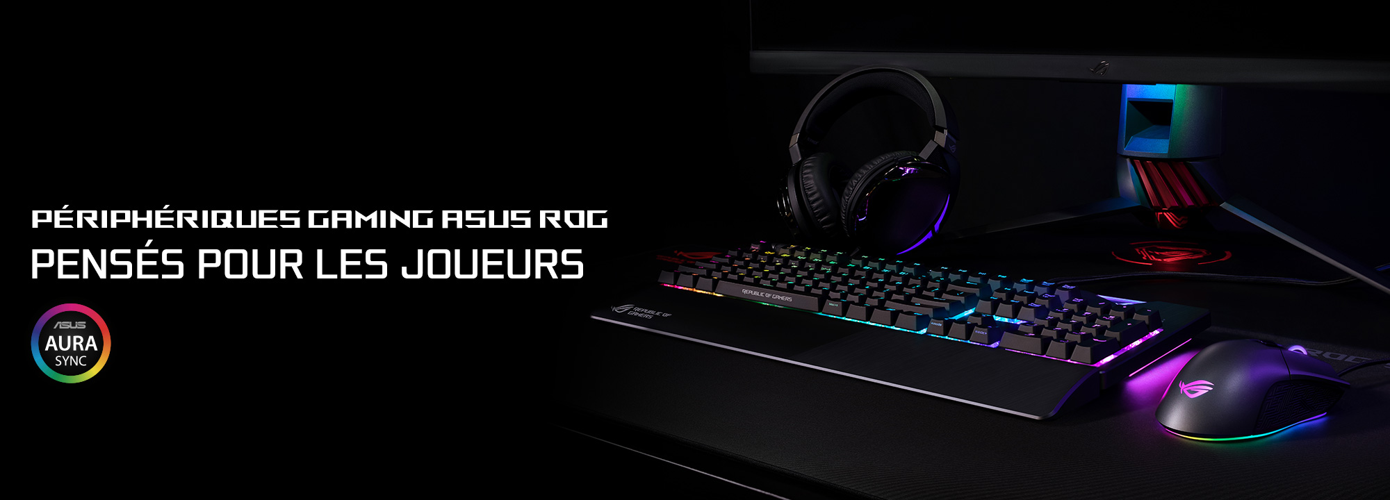 Les ingénieurs d'ASUS sont à la pointe de la recherche de moyens pour vous faire entrer plus souvent dans le cercle des gagnants. Nos périphériques incarnent le fruit de leur travail. Vous trouverez ci-dessous quelques-uns des meilleurs claviers, souris, casques et tapis de souris.