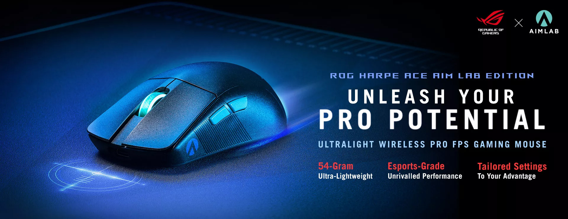 Souris de jeu Asus ROG Harpe Ace Aim Lab Edition, 54 g ultra-légère, connectivité (2.4GHz RF, Bluetooth, filaire), capteur 36K DPI, 5 boutons programmables, ROG SpeedNova, Esports & FPS Gaming, noir
