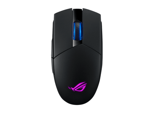 La souris de jeu sans fil ROG Strix Impact II est dotée d'un capteur optique de 16 000 ppp, d'une connectivité sans fil de 2,4 GHz, d'un design léger, d'une poignée exclusive à bouton-poussoir, de boutons pivotants et d'un éclairage RGB Aura Sync.