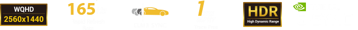 Moniteur de jeu de 27’’ compatible HDR avec résolution WQHD (2560x1440), dalle IPS, 165 Hz*, Extreme Low Motion Blur Sync, NVIDIA G-SYNC, Adaptive-Sync, HDR10, 1 ms